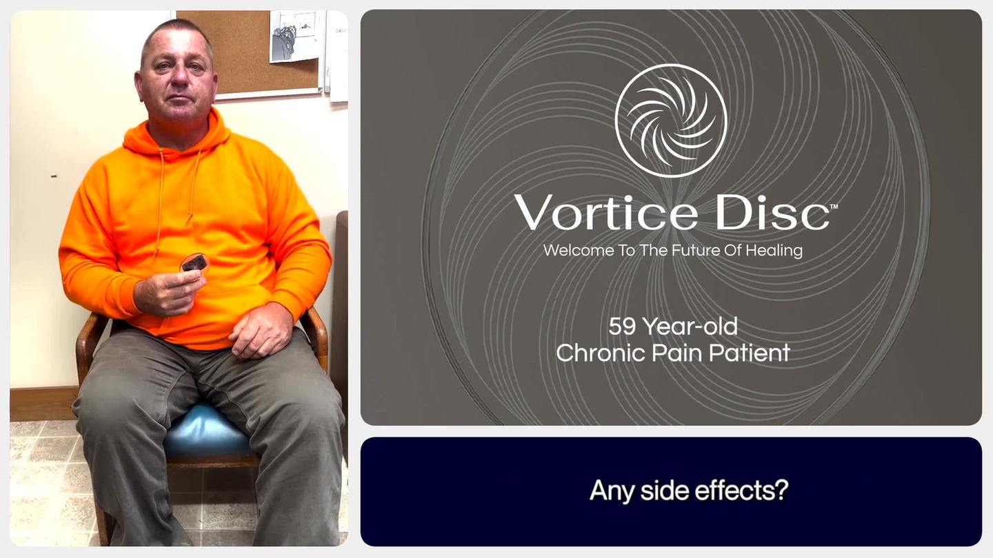 But this doesn’t have to be your reality forever. The Vortice Disc device goes beyond masking pain, it provides drug-free pain relief that works with your body to calm inflammatory response, support chronic pain relief, and promote natural recovery without pills.