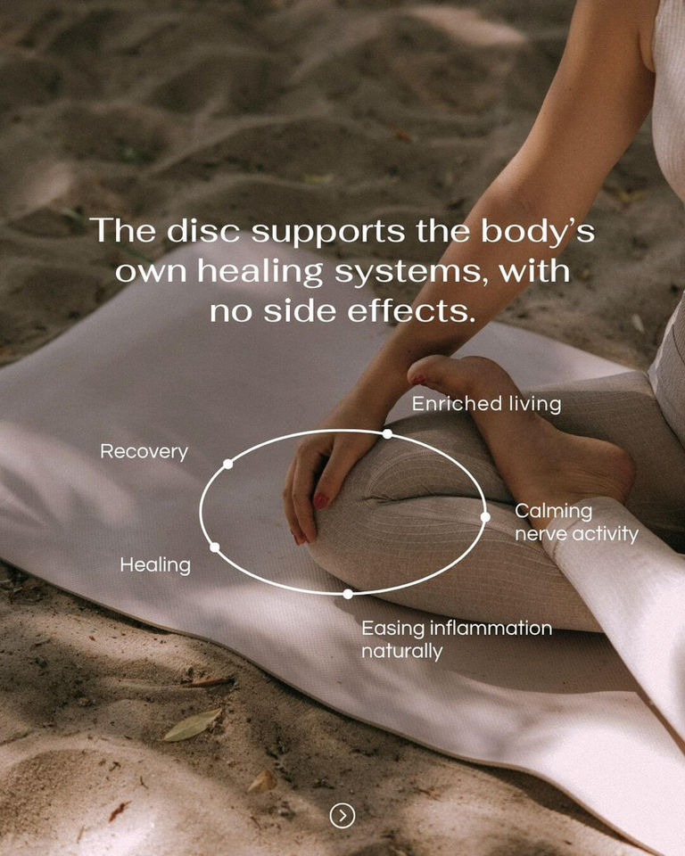 The Vortice Disc, when placed near the skin, helps reduce the pain associated with acute and chronic inflammation.